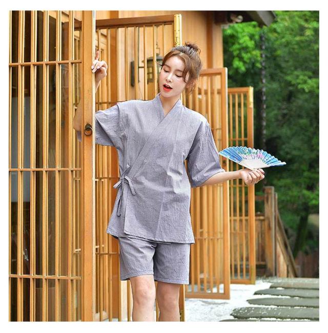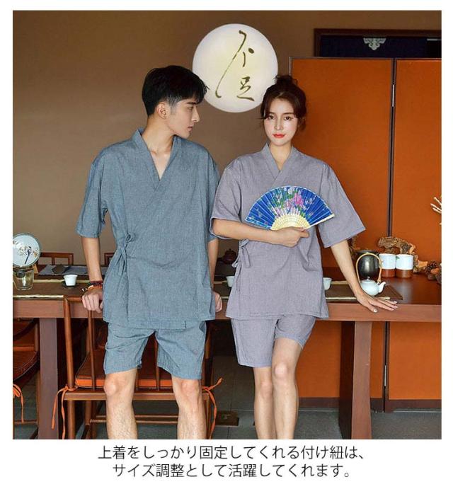 レディース スパ バスローブ ナイトウェア 半袖 綿 甚平 セパレート メンズ ルームウェア 上下セット ガウン 和風 前開き 夫婦 浴衣 和服 無地 純色 肌に優しい お風呂上り 甚平 サウナ 介護 温泉着 ホテル 男女兼用