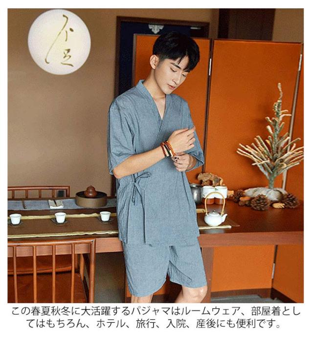 | 同じ素材、同じデザインで、カップルやご夫婦の毎日に、ペアのアイテムをお勧めます。 通気性が良く着心地も抜群で、お肌にも優しい素材です。 上着をしっかり固定してくれる付け紐は、サイズ調整として活躍してくれます。 丈夫でしわになりにくく、吸汗性、速乾性にも優れた生地は、目にも涼しい風合い。 普段の寝巻き、ルームウェアとして、旅行等のお泊り用も役に立ちます。部屋、旅館、ホテル、お風呂上り、スパ、サウナに適用されます。 通気性の良い素材を採用しているので、寝苦しい夜でも安眠快適です。 この春夏秋冬に大活躍するパジャマはルームウェア、部屋着としてはもちろん、ホテル、旅行、入院、産後にも便利です。 | |