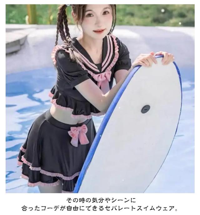 フリル コスプレ 可愛い 体型カバー ママ水着 水着 地雷系 原宿 韓国系 パッド付き セーラ服 ビキニ 2点セット セクシー セーラー服 盛れる リボン 痩せ セーラー服 春夏 温泉 海辺 リゾート 学生 水着 ミニスカ—ト