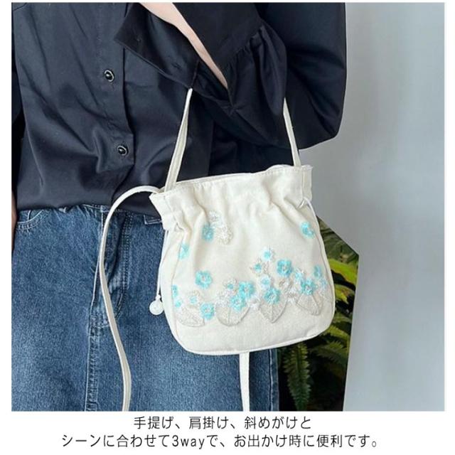 | 浴衣など和装スタイルにぴったりの花柄刺繍巾着バック。 キャンバス生地に刺繍のお花があしらわれた2wayバッグです。 手提げ、肩掛け、斜めがけとシーンに合わせて3wayで、お出かけ時に便利です。 程よいサイズ感でスマホ・ハンカチ・リップ・小さめのお財布など必要最低限の荷物が入ります。 日常使いはもちろん、浴衣や袴などの和装着物でのお出かけの際にも似合うデザイン。 | |