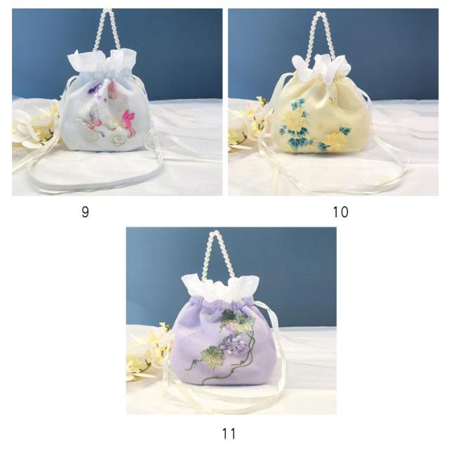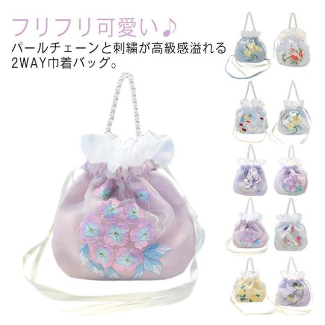 フリル 浴衣バッグ 刺繍 用 ョルダーバッグ 振袖 和柄 花柄 和装 ポーチ パールチェーン 浴衣 巾着バック 鞄 振袖 和装バッグ 手提げバッグ 着物 斜め掛け 肩掛け ポシェット 刺繍 手作り かばん