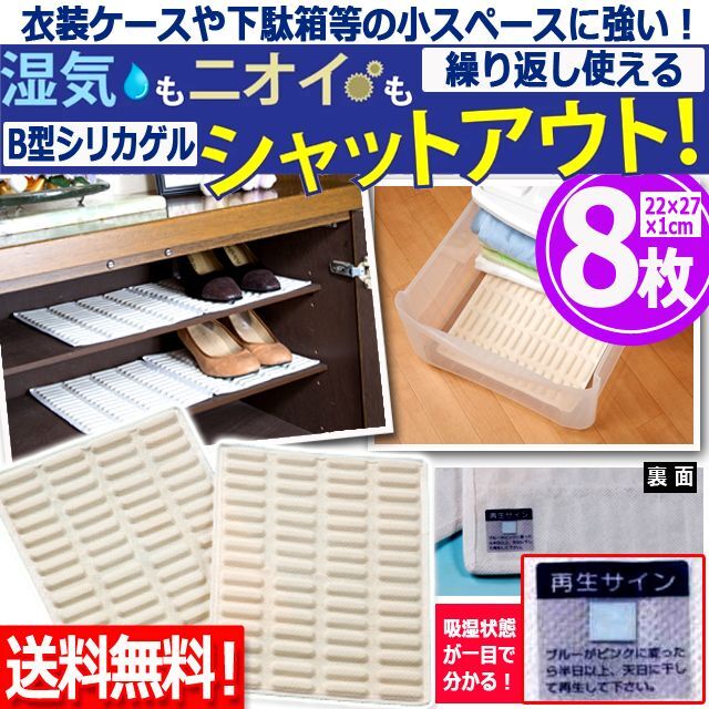 8枚 湿気 湿度 乾燥 臭い カビ ダニ 防虫 収納ケース 衣装ケース 下駄箱 ラック (繰り返し使えるB型シリカゲル乾燥シート 8枚)