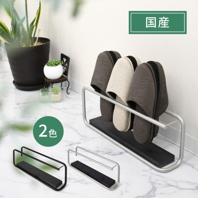 岐阜鉄の匠 【国産】 スリッパスタンド 3〜4足用 完成品 高さ17×幅46×奥行9.5 プラチナメタリック スリッパラック 木製 鉄製 おしゃれ