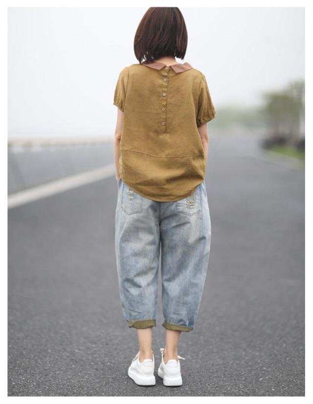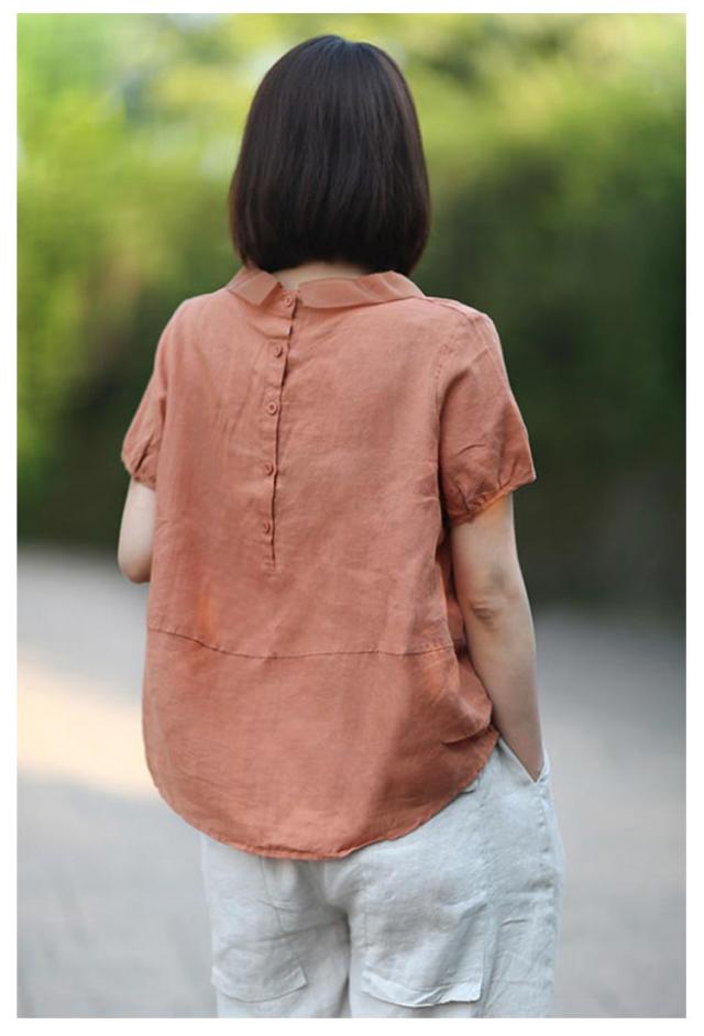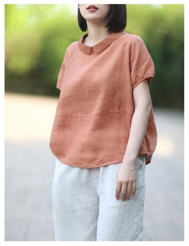 大人 綿麻 レディース レディース 綿 シンプル 大人 夏 半袖 レディース 春 シャツブラウス ゆったり リネン ブラウス 可愛い ブラウス 細見え 着痩せ おしゃれ 大人 トップス 可愛い 大きいサイズ オフィス シャツ 上品 OL 通学