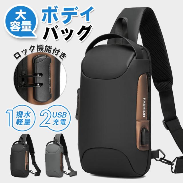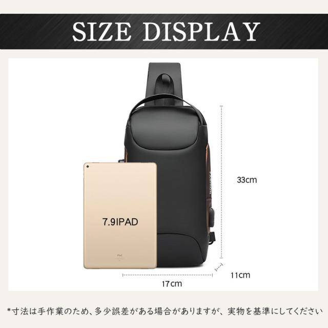 即納!ボディバッグ ショルダーバッグ メンズ バッグ 超軽量 大容量 斜めがけ 肩掛け 防犯 USB充電 携帯充電 撥水 おしゃれ 通勤