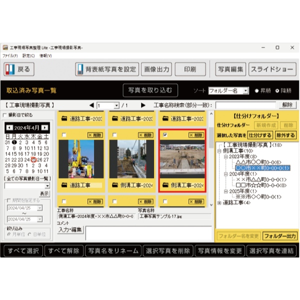 日々撮影する工事現場の写真をパソコン内で整理できる『工事現場写真整理Lite』や
