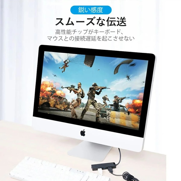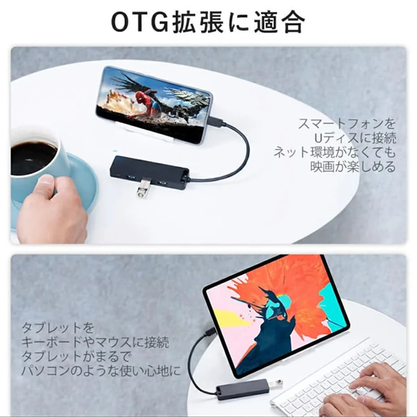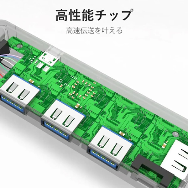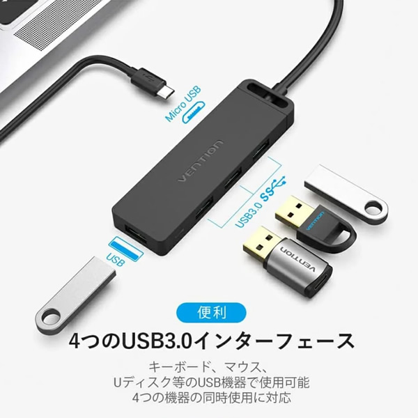 USB Type-CからUSB3.0を4つ接続できるUSBハブです。