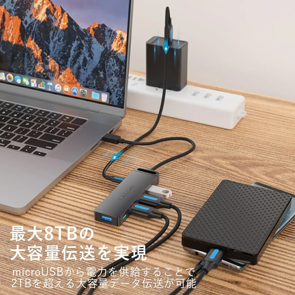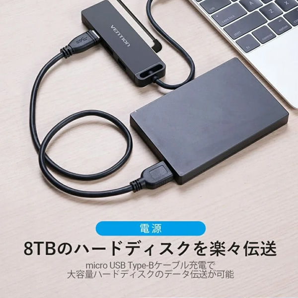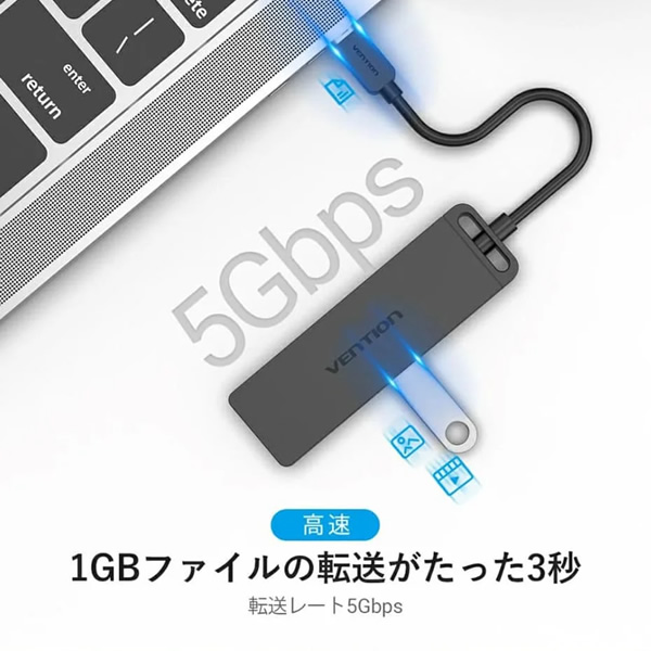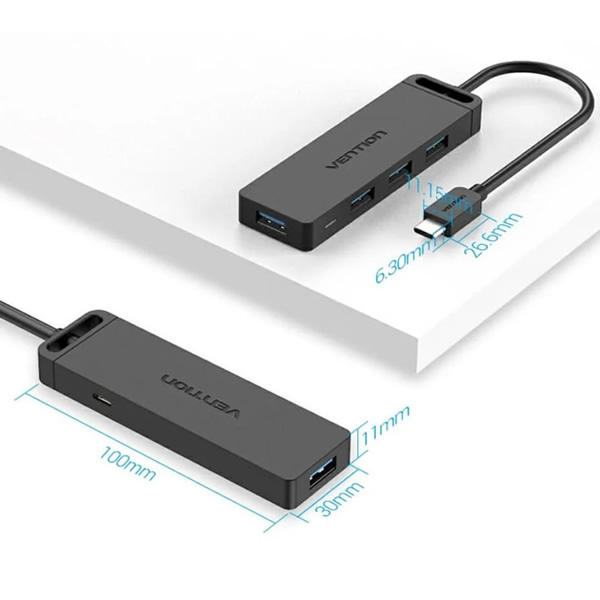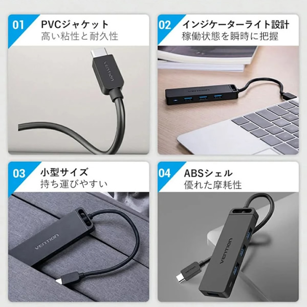 Type-C to 4-Port USB 3.0 ハブ セルフパワー / バスパワー対応 0.15m ABS Type VENTION TG-8221