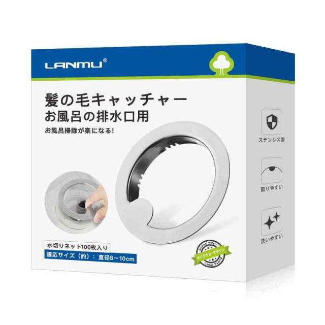 LANMU 髪の毛キャッチャー お風呂 排水口ネットホルダー ステンレス製 (本体+水切りネット)