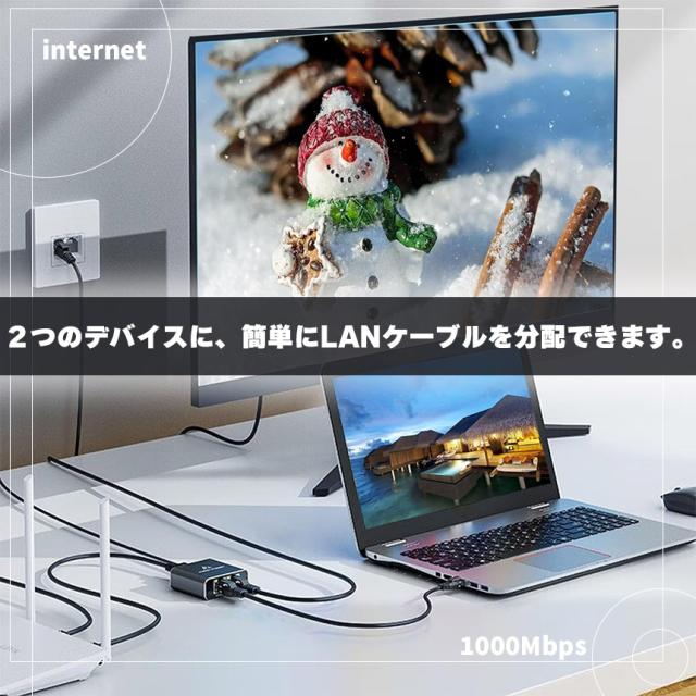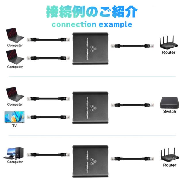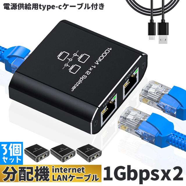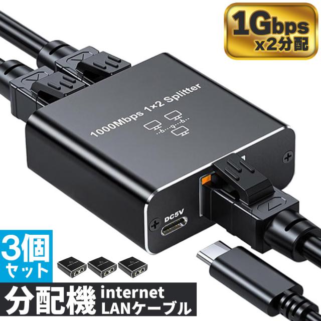 ネットワーク スプリッター 分配器 3個セット 1入力2出力 ギガビット 1000Mbps Cat5 Cat5e Cat6 Cat7 Cat8 LAN分配器 ネットワーク 拡張 2台デバイス
