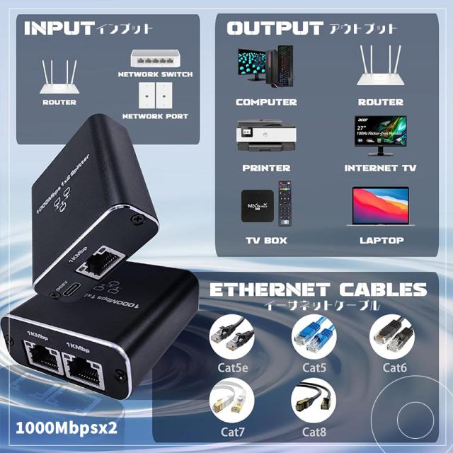 【1入力2出力ネットワークスプリッター】