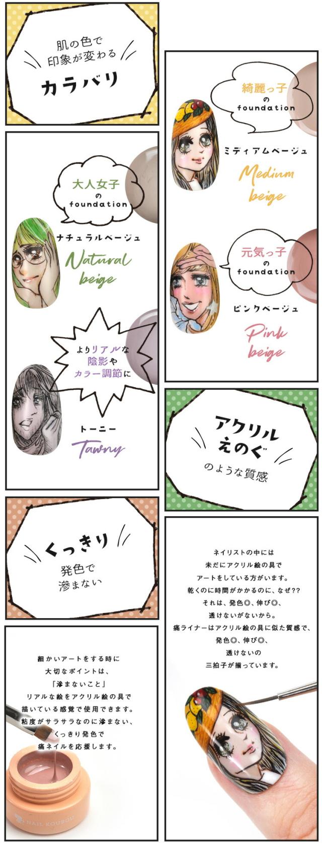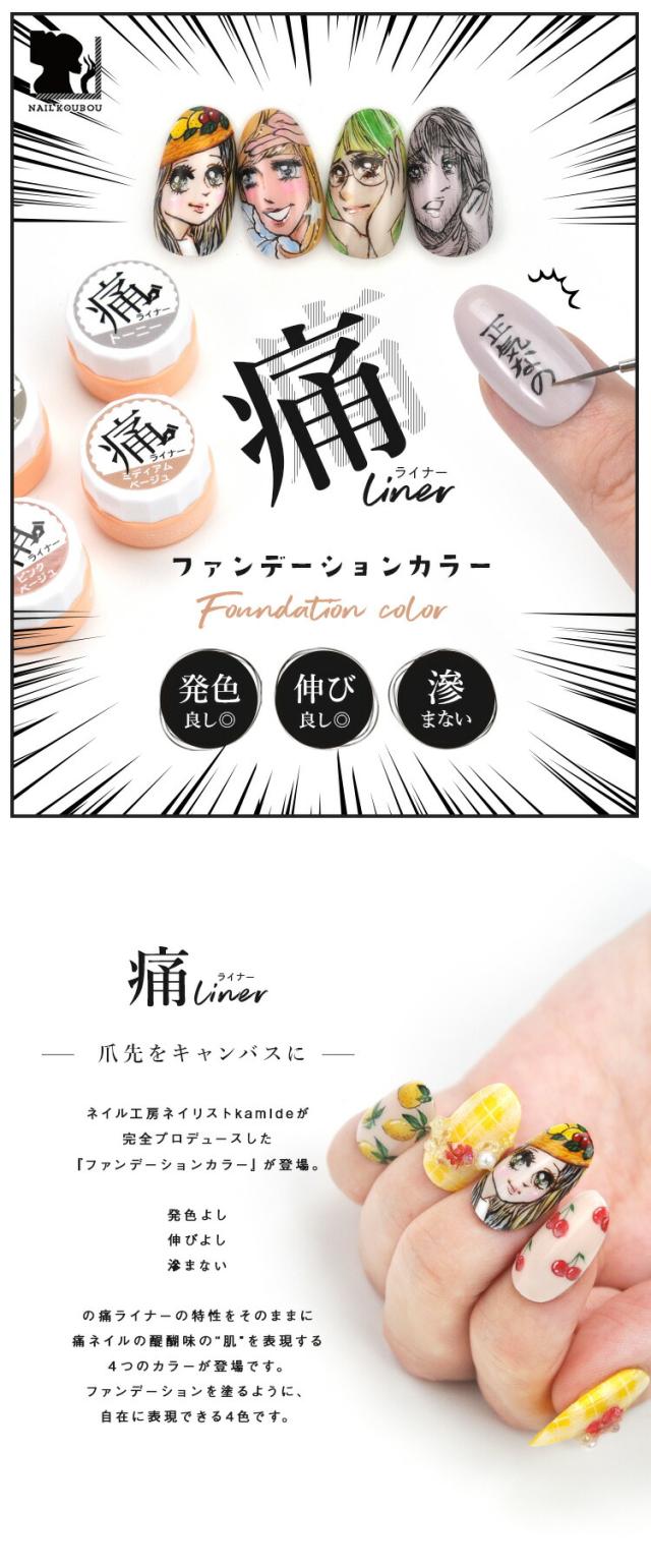 痛ライナー ファンデーション カラー 発色・伸び・滲まない 「どんな絵も描けるジェル」痛ネイル カラージェル ジェルネイル | カラー ポリッシュ ネイルジェル アートジェル ジェルネイル用品 爪 カラージェルネイル ジェルネイルアート ネイル工房 にわちゃん