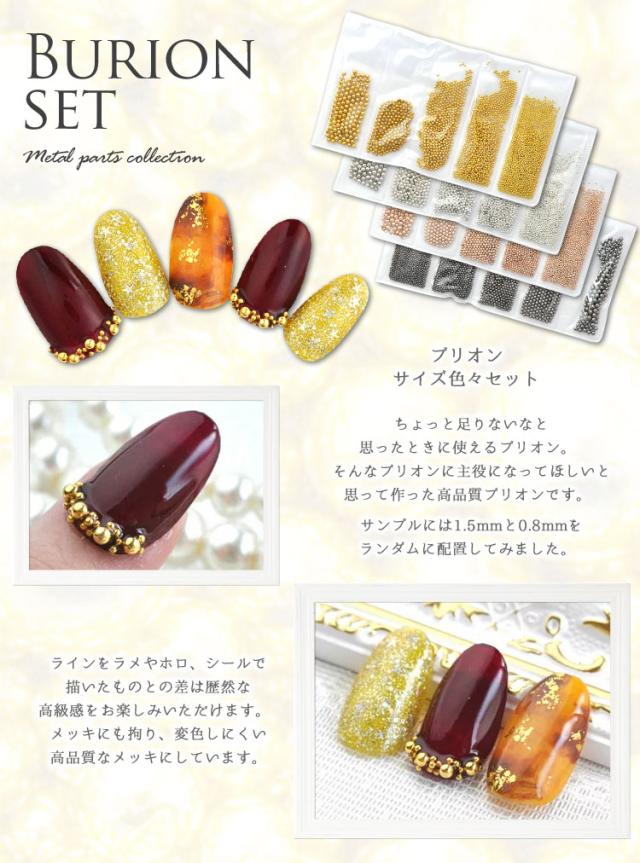 メタルパーツ ネイルジュエリー ネイルパーツ (ゴールド/シルバー/ピンクゴールド/メタルブラック)高品質ブリオン 色々サイズセット | ジェルネイル ジェル ネイル パーツ ブリオン メタルブリオン ジェルネイルパーツ ネイル用品 メタル セルフ ジェルネイル用品 ジュエリー
