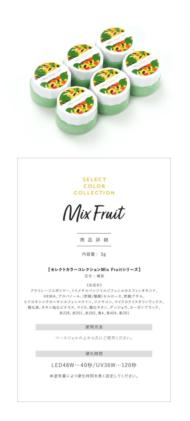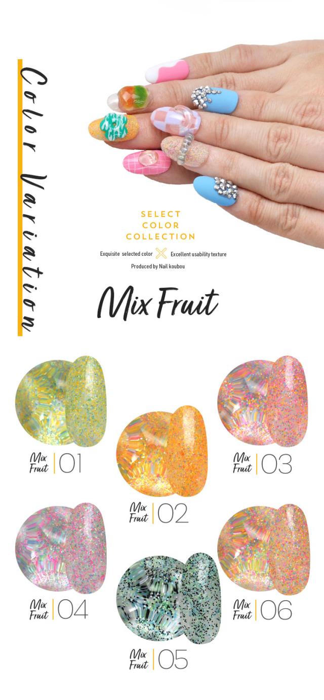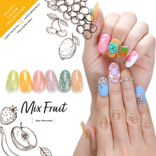 Select color ミックスフルーツ つぶつぶがかわいい カラージェル ジェルネイル セレクトカラージェル | カラー ポリッシュ ネイルジェル アートジェル ジェルネイル用品 爪 カラージェルネイル ジェルネイルアート ネイル工房 にわちゃん