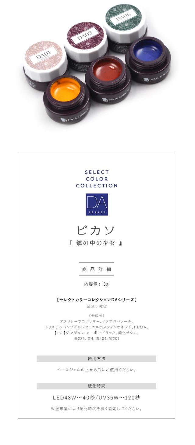 カラージェル DAシリーズ ピカソ くっきりカラー ジェルネイル セレクトカラージェル | カラー ポリッシュ ネイルジェル アートジェル ジェルネイル用品 爪 カラージェルネイル ジェルネイルアート ネイル工房 にわちゃん