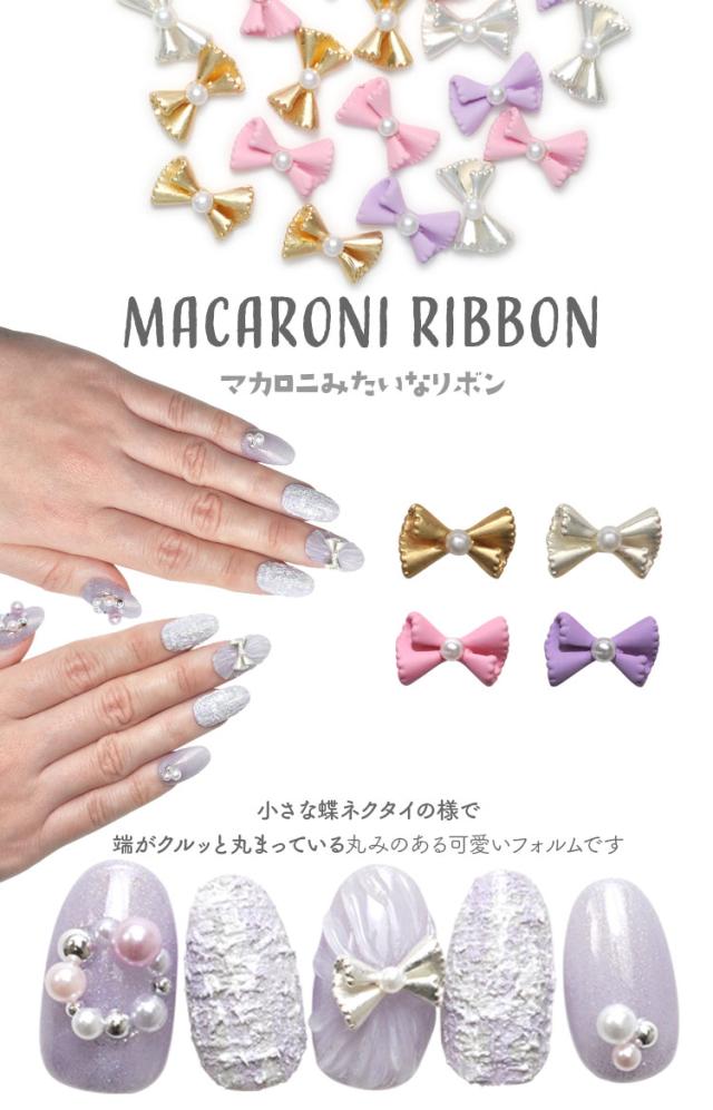 マカロニリボン 2個入 選べる4色 メタルパーツ リボンパーツ ネイルジュエリー ネイルパーツ リボン | ジェルネイル ネイル パーツ ジェル ネイル用品 メタル デコパーツ ジュエリーネイル ジェルネイルパーツ ネイル工房