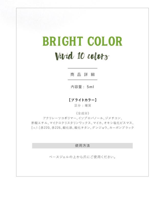 夏の元気 カラージェル ネオン ビタミン ビビット『 BrightColor』 ジェルネイル | カラー ポリッシュ ネイルジェル アートジェル ジェルネイル用品 爪 カラージェルネイル ジェルネイルアート ネイル工房 にわちゃん