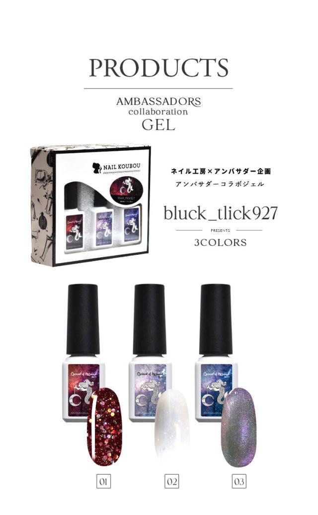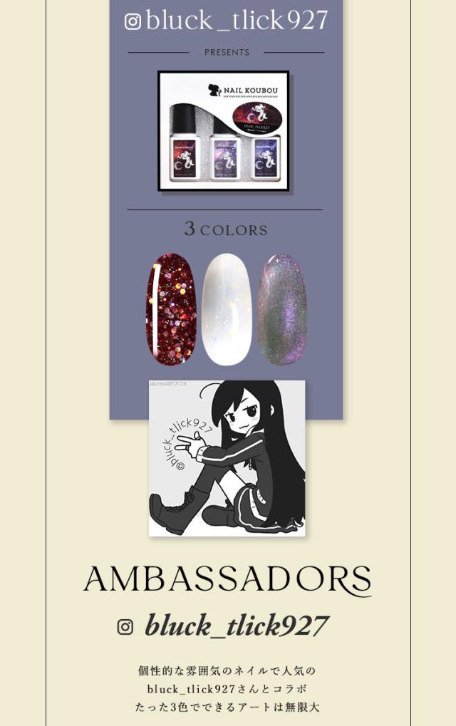 【bluck_tlick927×ネイル工房】 アンバサダーコラボ企画 3本セット ジェルネイル カラージェル | カラー ポリッシュ ネイルジェル アートジェル ジェルネイル用品 爪 カラージェルネイル ジェルネイルアート にわちゃん