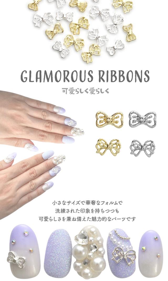 ネイルパーツ 5個入 リボン | ネイル ジェルネイル パーツ ネイル用品 デコ ネイルジュエリー シルバー ゴールド ネイル工房 ネイルアート ネイルグッズ デコパーツ ジェルネイルアート メタル ジェル ジェルネイルパーツ