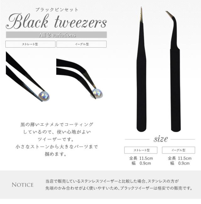 【全品半額coupon事前配布中】ジェルネイルやレジンに♪ブラックピンセット★ツイーザー★選べる2種類★ストレート型orイーグル型 | ピンセット ネイル ジェルネイル ネイル用品 デコ用品 アート用 カーブ ステンレス ツイーザー イーグル ブラック 道具 ネイル工房