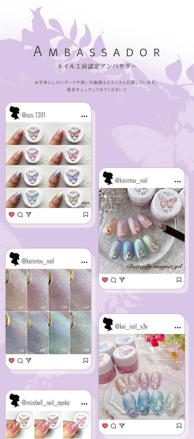 マグネットネイル "Butterfly" 全8色 ジェルネイル マグネットネイル カラージェル キャッツアイ 磁石 エフェクトパウダー オーロラパウダーラメ | カラー ネイルジェル アートジェル ジェルネイル用品 爪 カラージェルネイル ネイル工房 にわちゃん