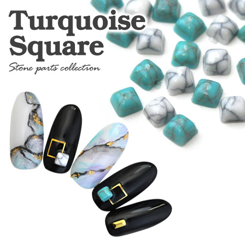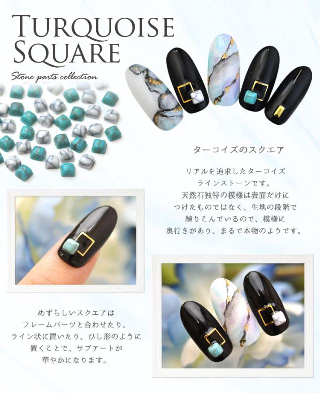 ターコイズ ラインストーン 天然石風 スクエア 四角 ストーン ネイルアート ネイルジュエリー ジェルネイル | ネイル パーツ 石 ネイル用品 デコ ネイルパーツ デコ用品 ボヘミアン エスニック インディアン ジェルネイルアート デコレーション ネイル工房