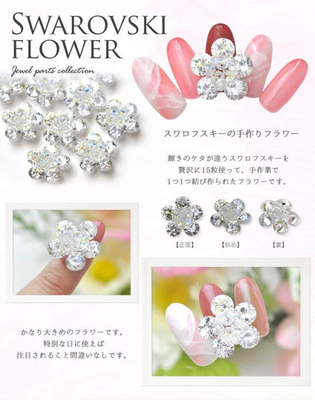 スワロフスキー フラワー パーツ ネイル 手作り ハンドメイド スワロ ジェルネイル ネイルジュエリー ネイルアート ホワイト クリスタル | ネイルパーツ ネイル用品 ジェル ジェルネイルパーツ 花 ジェルネイル用品 セルフネイル ストーン ネイルグッズ ネイル工房