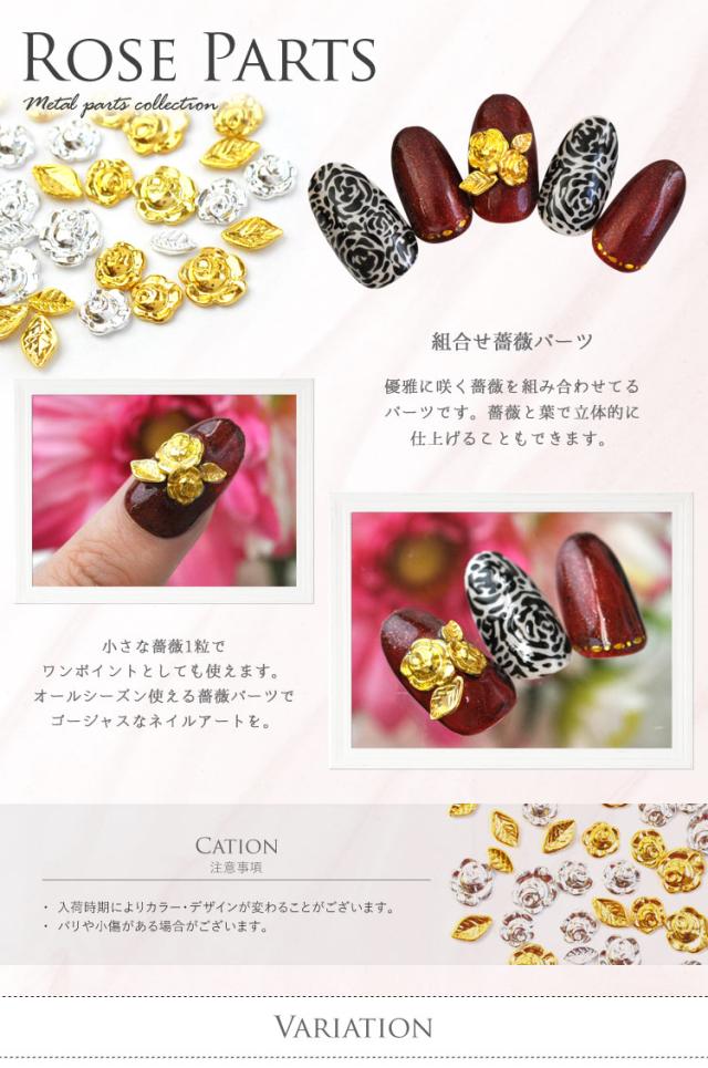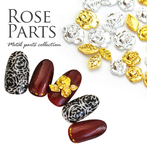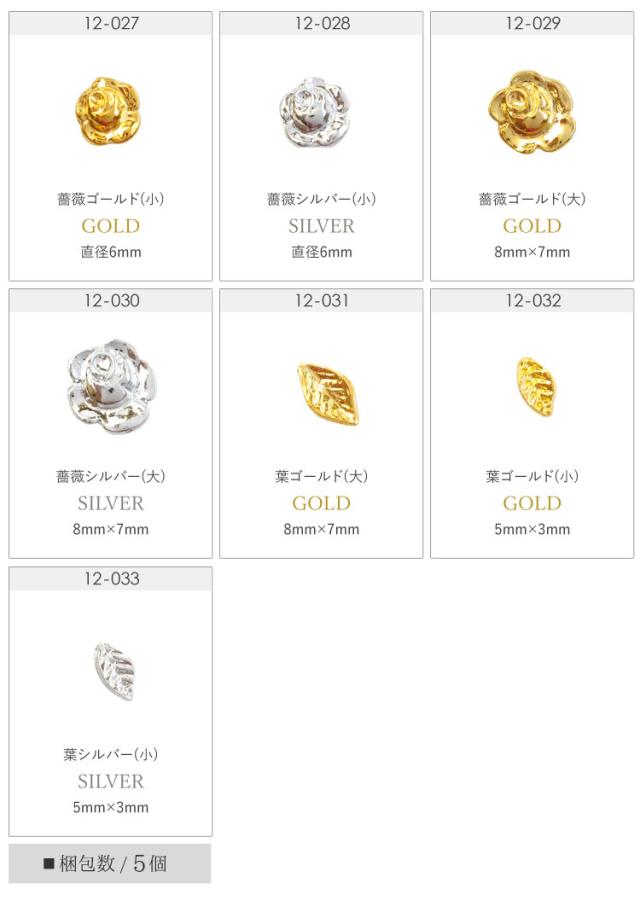 ネイルパーツ (ゴールド/シルバー)メタルパーツ★薔薇 5個/ネイルジュエリー フラワー リーフ 葉|メタル ネイル パーツ ジェルネイル ネイル用品 ジェル ジェルネイルパーツ ネイルアート 花 ゴールドパーツ シルバーパーツ バラ ジェルネイル用品