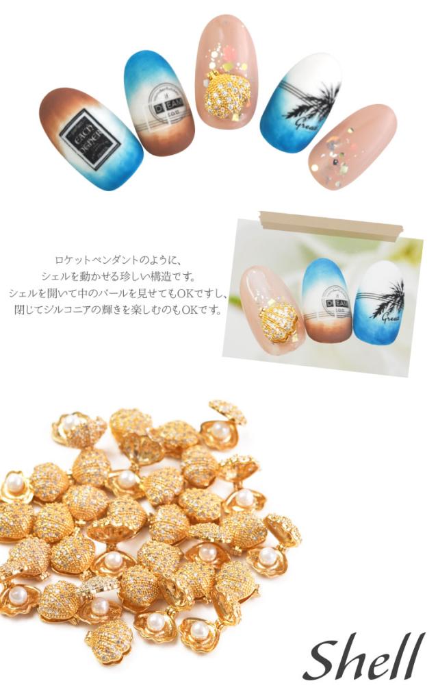 ネイルパーツ メタルパーツ マリンパーツ ネイルジュエリー ゴールド ロケットペンダント シェル 貝 ジルコニア | メタル ネイル パーツ ジェルネイル ネイル用品 ネイルパーツ ジェル シェル スタッズ 夏 マリン シェルパーツ メタルスタッズ ネイル工房