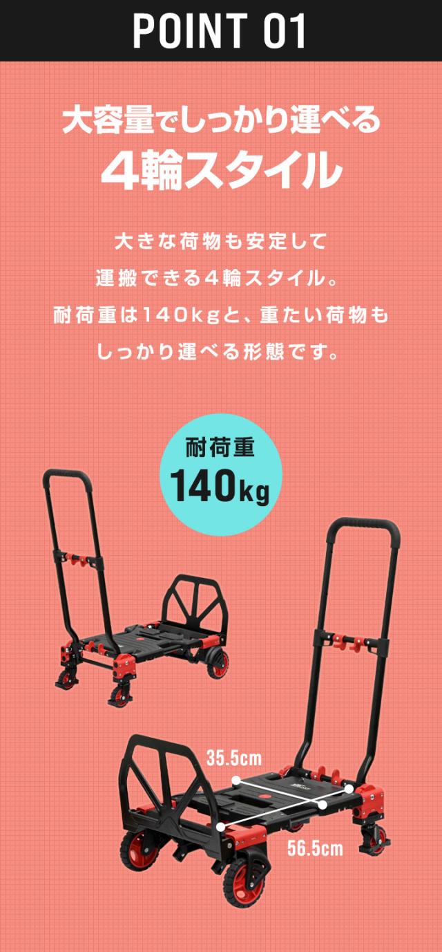 FIELDOOR 台車 折りたたみ 折りたたみ台車 コンパクト キャスター付き 静音 4輪/2輪台車 2WAYタイプ 耐荷重140kg ハンドキャリー 手押し台車 スリム フラット キャリーカート 折り畳み 軽量 業務用 家庭用 アルミ スチール 1年保証 送料無料