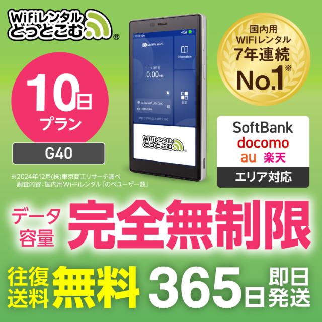 ポケットwifi レンタル 完全無制限 10日 G40 日本国内専用 往復送料無料 即日発送 ソフトバンク 空港 受取 wi-fi ルーター