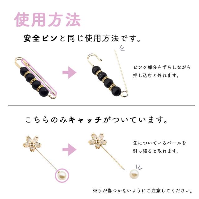 サイズ調節以外にも、ブローチとしてやストールを止めるピンとしても使えます。