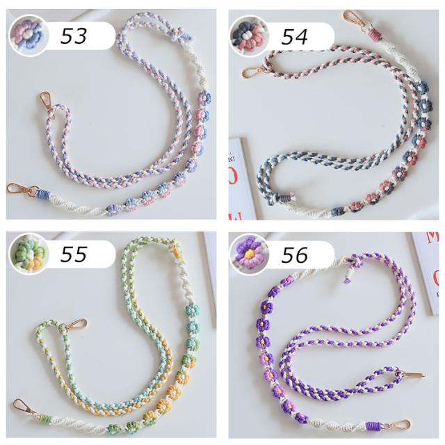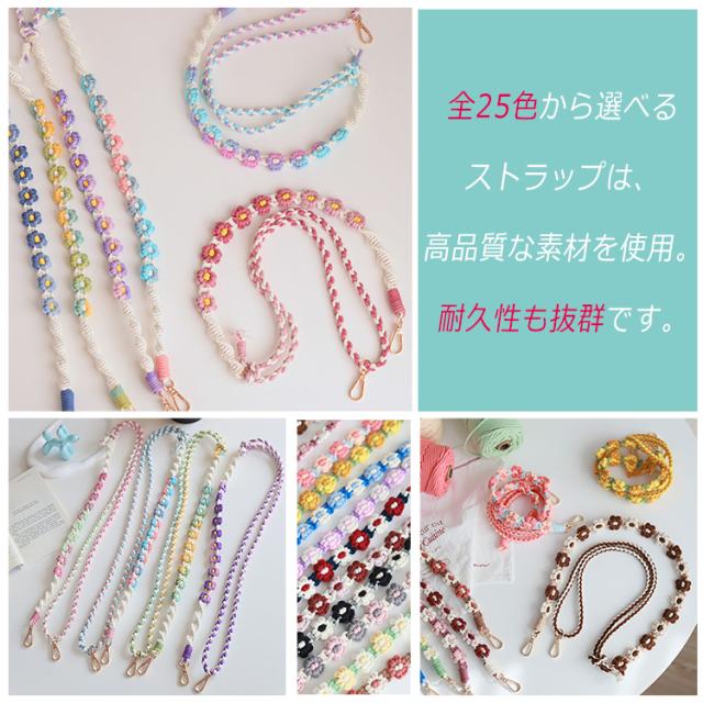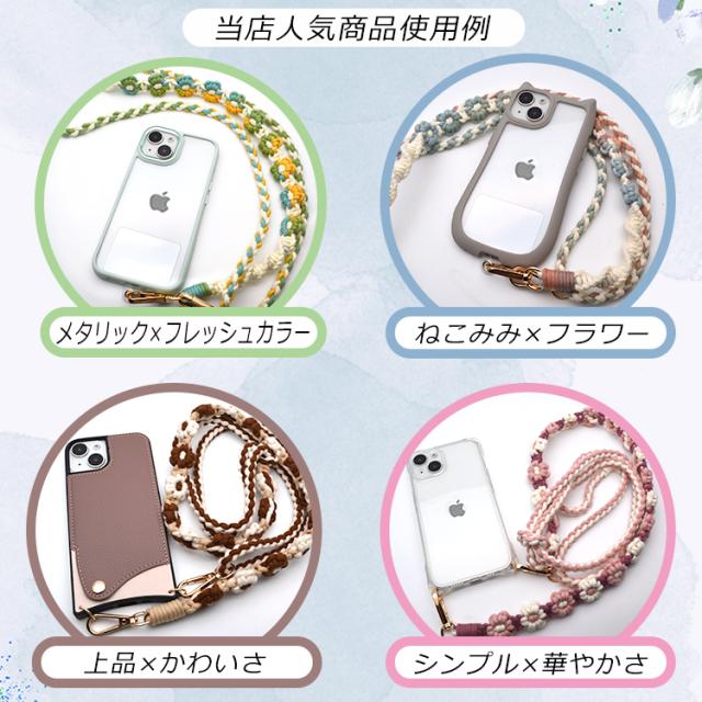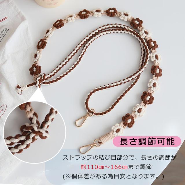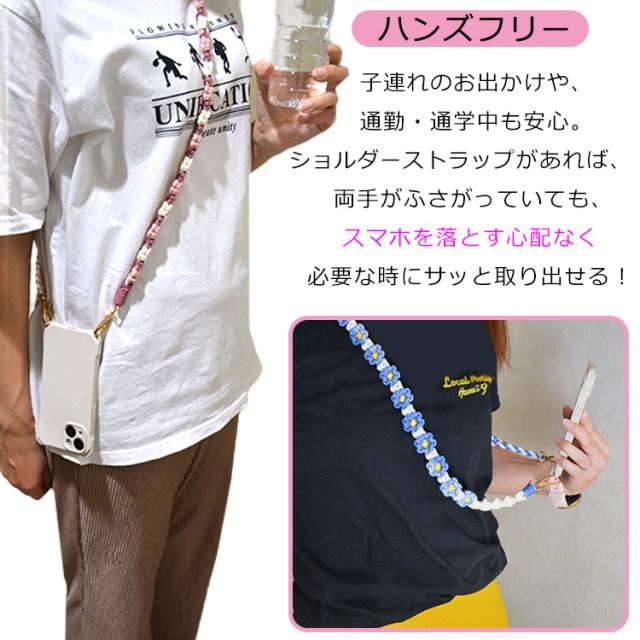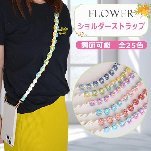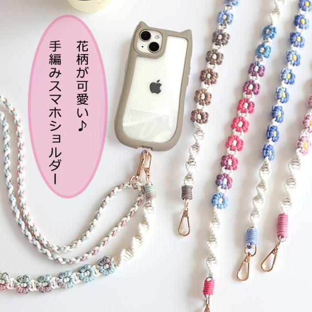 【花柄ショルダー 長さ調整可能】スマホ ストラップ 花 フラワー手編み スマホショルダー ショルダーストラップ ホルダー ショルダー タイプ ストラップ 紐 ロング 手作り ハンドメイド 丈夫 肩掛け 斜めがけ 推し活 SNS 人気 韓国 おしゃれ かわいい