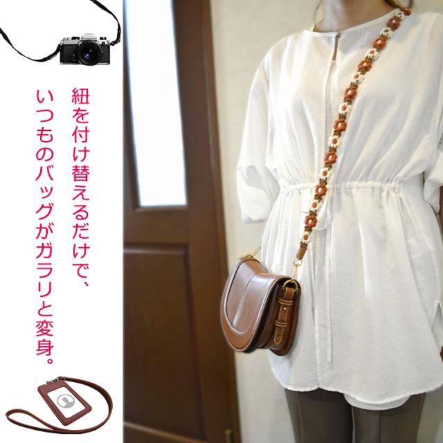 長さ調節が可能で、首掛け、肩掛け、斜め掛けと、取り付け自由自在。