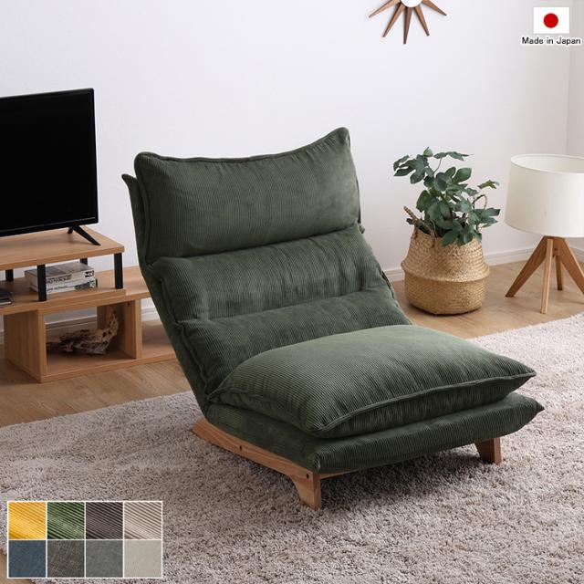 リクライニング ローソファ ハイバック 日本製 1人掛け 1P 木製脚付き グリーン色 全8色 ふっくら極厚ウレタン2重クッション 座椅子 パーソナルソファ 国産