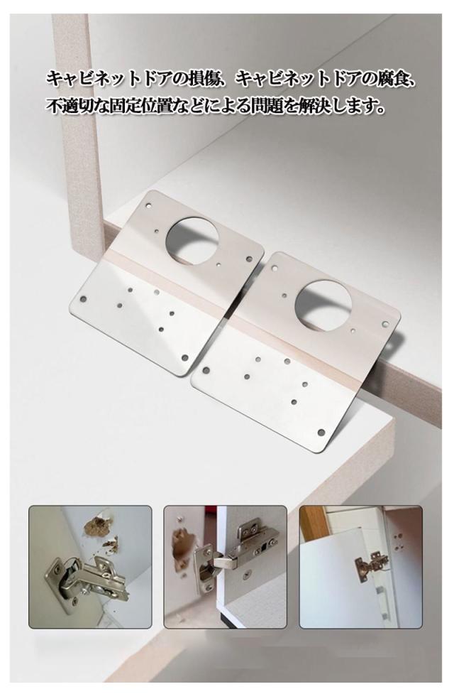 機能 キャビネットドアの損傷、キャビネットドアの腐食、不適切な固定位置などによる問題を解決します。ヒンジプレートはドアとサイドパネルの両方に使用でき、元の損傷領域をカバーします。