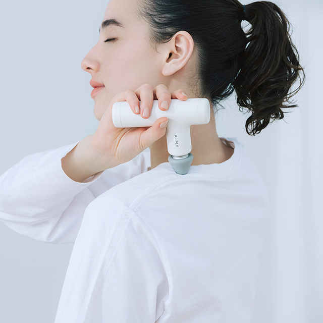 筋膜リリースガンで簡単にボディケア心地よい振動が筋膜にアプローチして、ピンポイントで体を刺激する「コンパクトビューティーガン」をご紹介します。凝り固まった筋肉を狙い撃ちするので、疲れを感じやすい肩や腰はもちろん、顔まわりや関節部分までセルフケアが可能。スマートに持ち運べる軽量&スモールボディを叶えました。