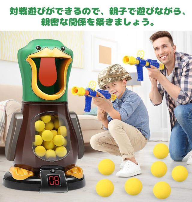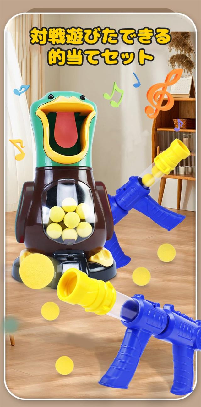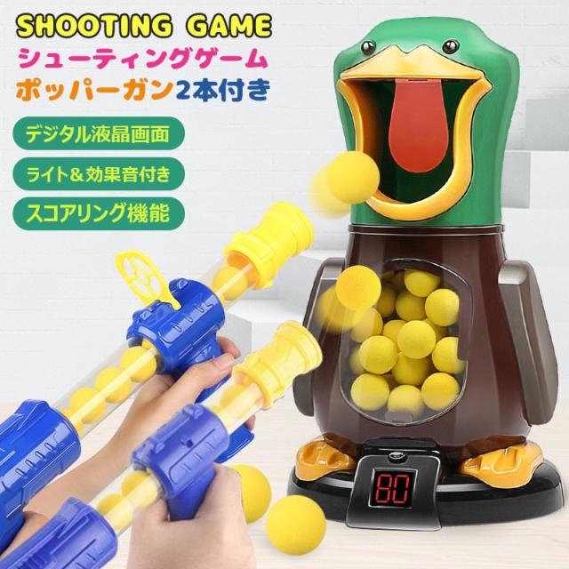 おもちゃ ポッパーガン アヒル 対戦セット ターゲット 射的 射撃 的あて 銃 ピストル トイガン おもちゃガン シューティング 6才〜 ソフトガン スポンジガン 効果音 対戦 ごっこ遊び 室内遊び 安全 スポンジ弾 ボール クリスマス スポーツトイ 親子ゲーム 射撃玩具 子供