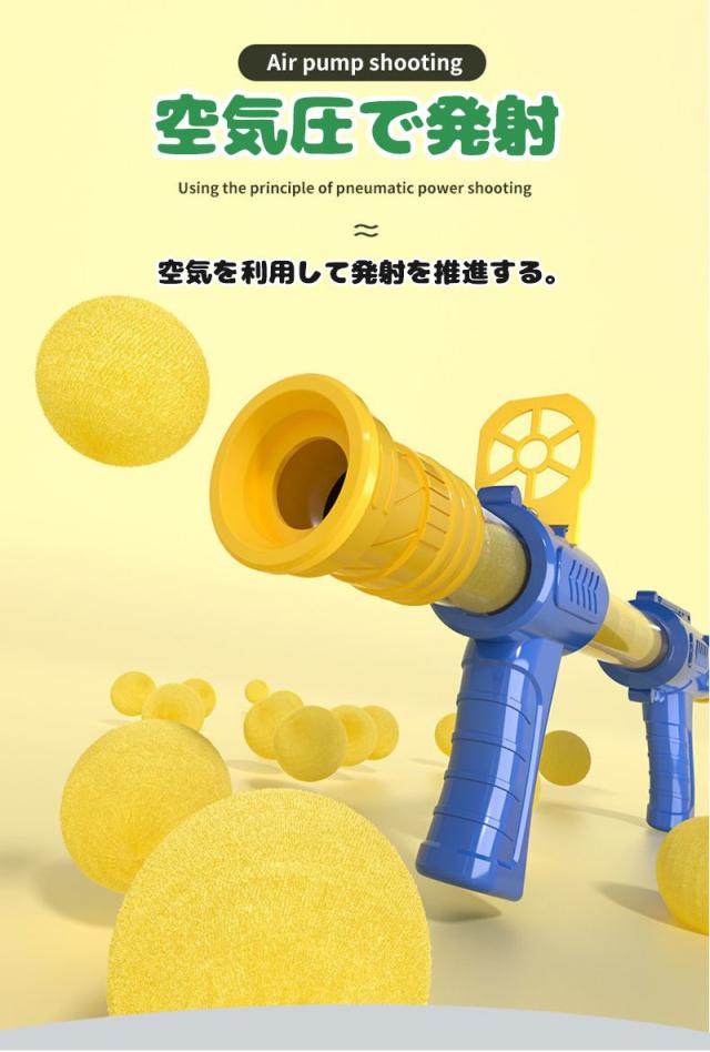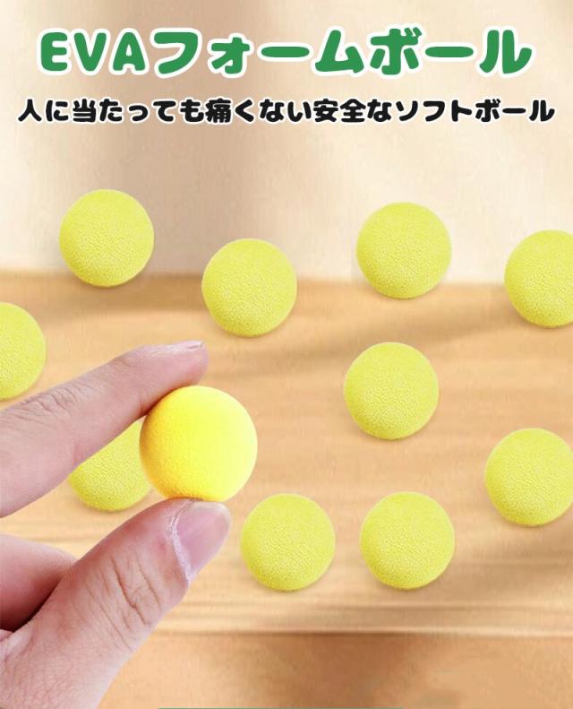 【evaフォームボール*安全なABS材質】柔軟性、耐摩耗性が高いevaフォームボールを使い、人に当たっても痛くなく、家具に当たっても傷が残らないです。また、本体とエアーガンは軽量、耐衝撃性が高いABS材質で作られ、子供に対しても持ちやすく、安心に使用できます。