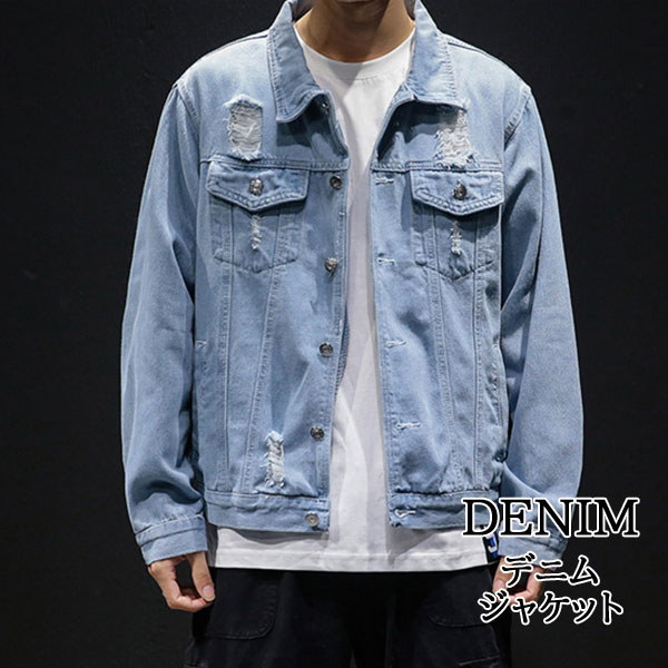 メンズ デニムジャケット Gジャン ダメージ アウター ジージャン トップス カジュアル 長袖ブルゾン オールシーズン 作業服