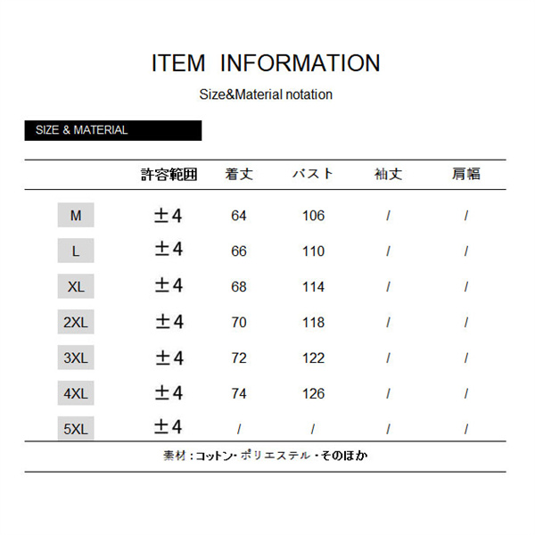 サイズ:/M/L/XL/2XL/3XL/4XL