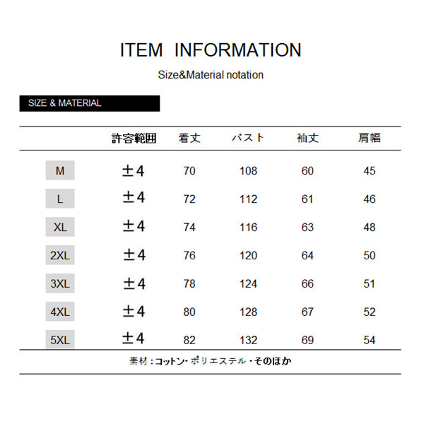 サイズ:/M/L/XL/2XL/3XL/4XL/5XL