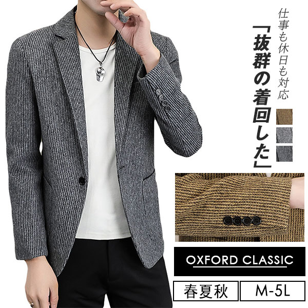 テーラードジャケット メンズ ストレッチ ストライプ柄 シングル ジャケット カジュア 長袖 無地 メンズジャケット スウェット スリム 春 秋
