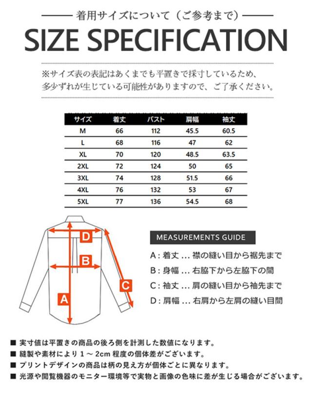※基本的に、XL・LL・2Lのサイズはすべて同じサイズです。