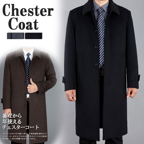 チェスターコート メンズ アウター ロングコート ビジネスコート ウール 通勤 オンオフ兼用 ロング丈 細身 スリム 秋冬服 送料無料