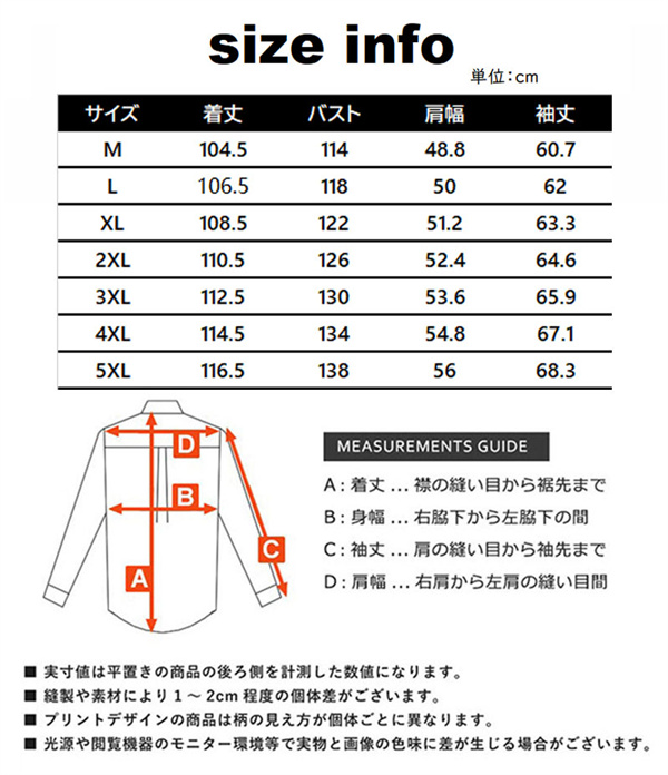 ※基本的に、XL・LL・2Lのサイズはすべて同じサイズです。