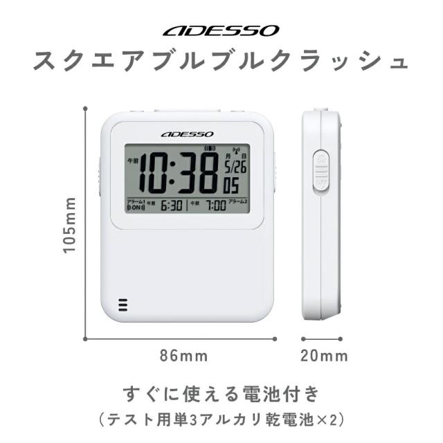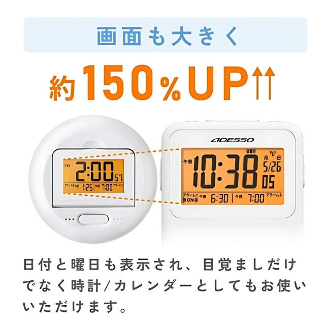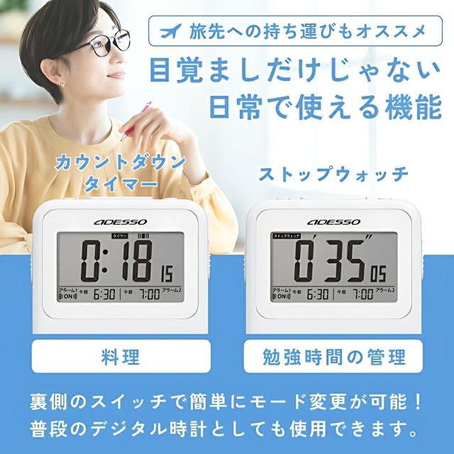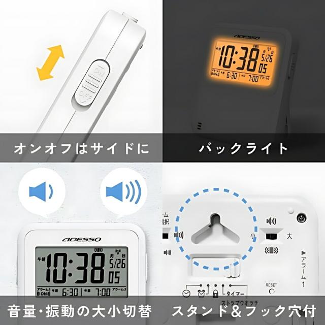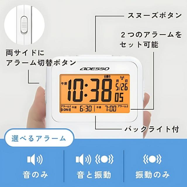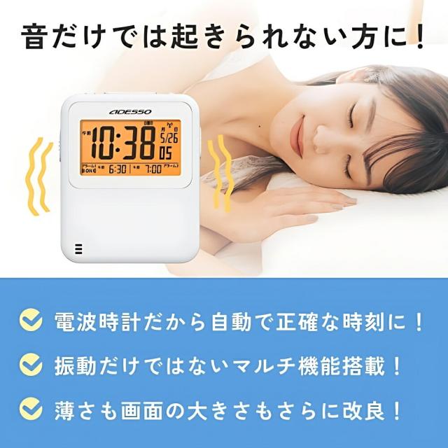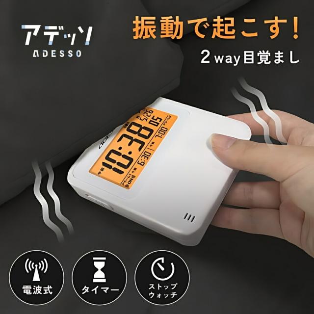 商品名:アデッソ振動式電波目覚ましクロックADE-02WT目覚まし時計デジタル振動強力アデッソ振動式スヌーズ電波時計超薄型タイマーストップウォッチ機能ホワイト時計