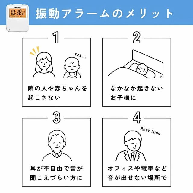振動目覚ましだけでなく、普段の電波時計としても使えます