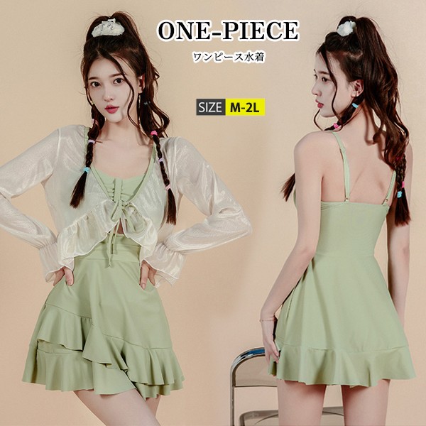 水着 体型カバー ワンピース水着 おしゃれ 可愛い セクシー 小胸 バスト 盛れる オールインワン 細見え ラッシュガード