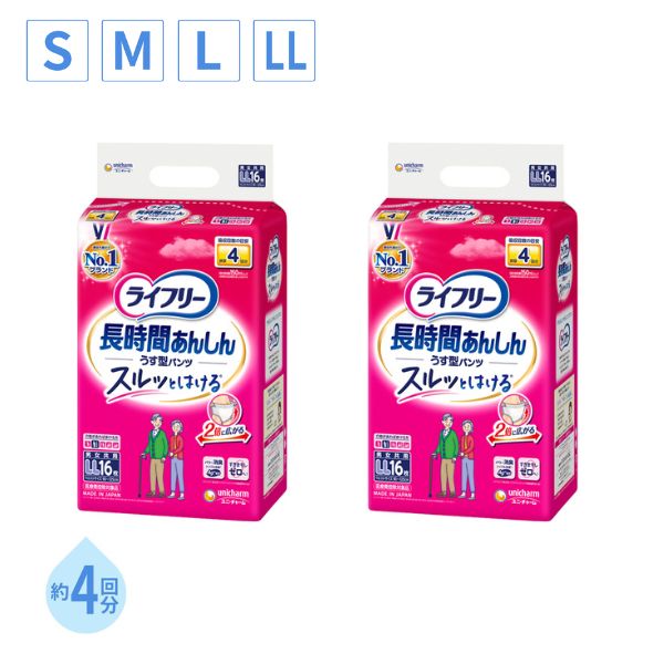 【2袋セット】ライフリー 紙パンツ 紙おむつ 4回 長時間あんしん うす型パンツ S〜LL ユニ・チャーム 介護 おむつ リハビリパンツ 大人用紙おむつ 介護用品